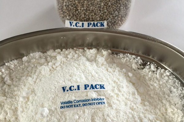 氣相防銹粉末多種特制的氣相緩蝕劑原料按一定配比均勻混合加工而成,具有水溶性,是一種新型的氣化性防銹材料。在密閉空間內(nèi),VCI經(jīng)氣化揮發(fā)到金屬的每個角落,吸附在金屬表面形成致密保護膜層從而起到防銹的作用